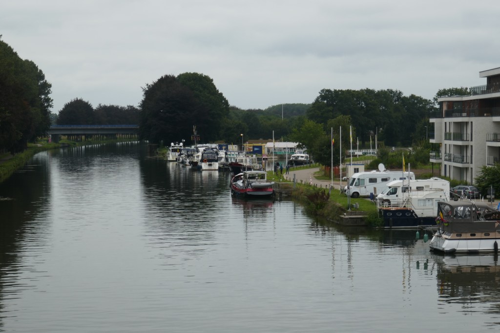 We travelled on the Zuidwillemszaart to its junction with the Bocholt-Herentals canal before heading south for a short while to reach Bocholt, our destination for the night. We moored on the long pontoon in the yacht haven, rather than the fingers in the canal and celebrated our first night on the move for almost a year.