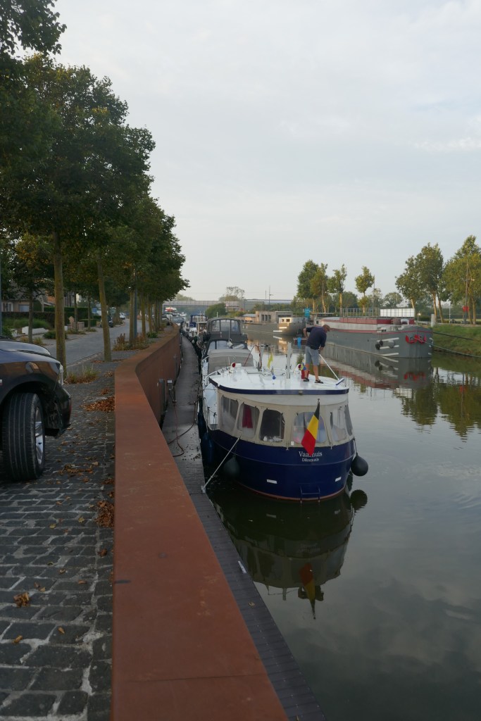 We arrived at Portus Ganda in central Ghent quite late and there was no harbour master on site. As the pontoons were locked and there was no one to give us a key, we had to moor on the quay instead. In summer this is probably fine as there would plenty of boats around, but in September there was only us. With no security and some dubious activity they decided it was better to eat on board rather than head into town as planned. I was very glad, as I really didn’t want to be left home alone. Personally, I much prefer the harbours outside the city as there are cycle paths and green spaces to play, but I suppose it was along trek in on Little Dick.