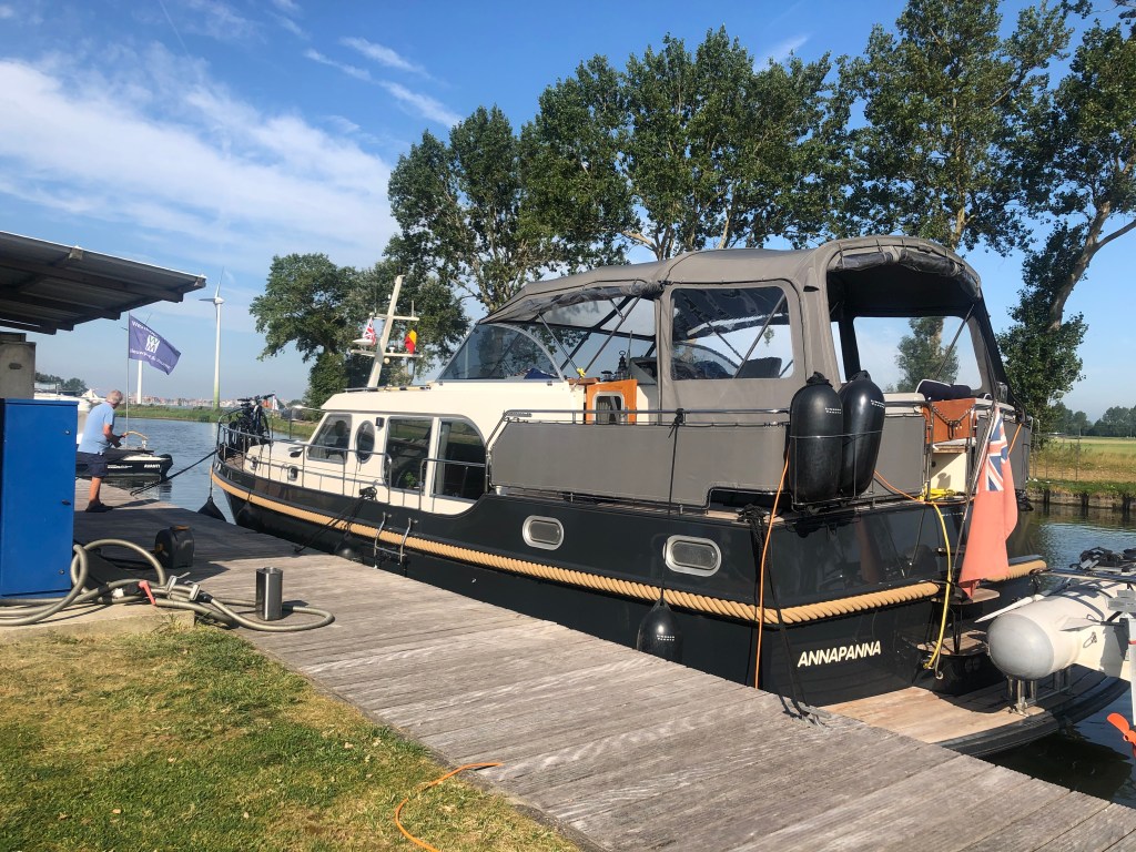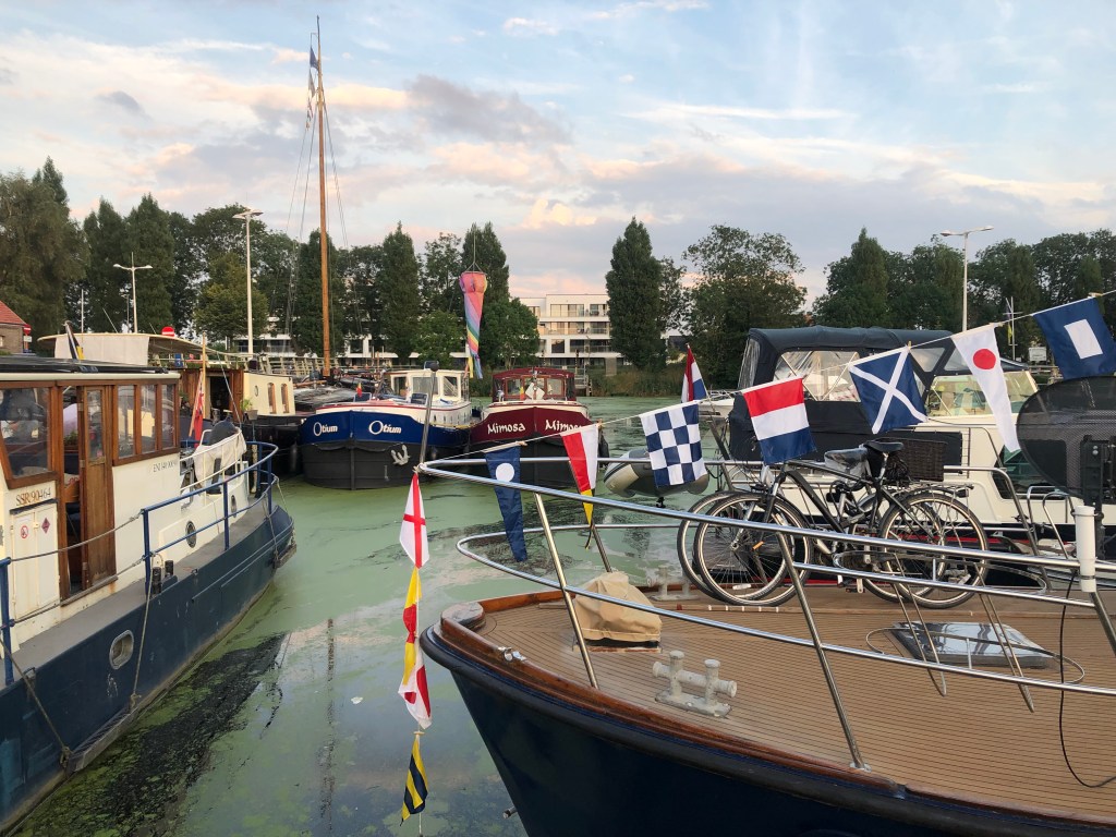 Then we were off again, this time to Maasbrommel and Yachthaven Hazelland, where we were meeting up with Shirley and Jimmy Faure. Last time we were here we were was in 2019 with Mags and Sheila and we had cocktails in the sunshine on the picnic tables. I also remember the algae, so no swimming, and an unfriendly Alsatian, so no off lead by the boat. This time there was no algae, so off we went for a swim. There was no sign of the Alsatian either, although I was suspicious as their tent was still there! it turned out I was right to be suspicious, as later on along came the harbourmaster…… with his dog…. the Alsation! We never saw him again even though he does live on a boat in the habour – and it is his tent!