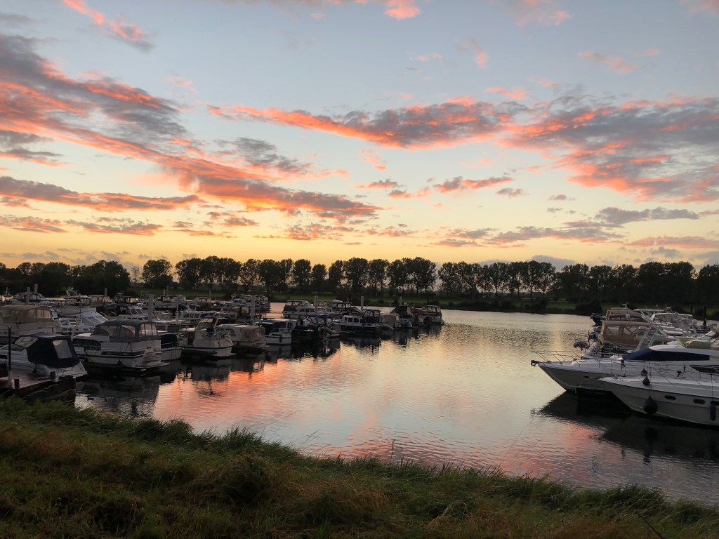 On the move again and this time to one of my favourite places, Neer. When we were here last year there was a lot of building work going on reinforcing the flood defences to the town. I’ll bet the town are glad they got it done before the floods in July! The work is finished now and it all looks very smart. There is a new walk along the Maas and some very smart steps going up to the clubhouse. Thankfully, the reason this is one of my favourite places is unchanged. I can still jump off the boat, cross the grass and run straight into the Maas. Perfect!