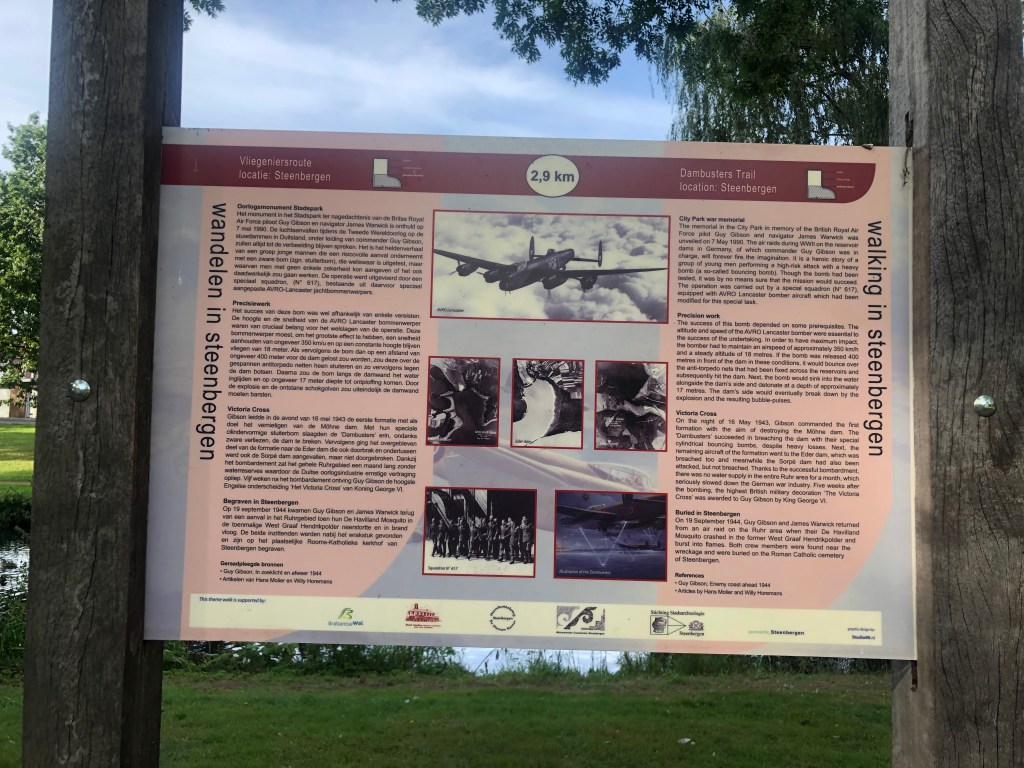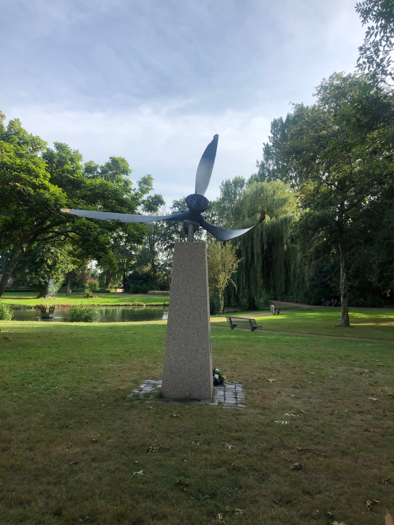 In the park was a statue and on the top was a propeller. It turned out that Steenbergen was the town where Guy Gibson, of Dam Buster fame, crashed, died and is still buried, so the statue is a memorial to him and all the RAF crew who died in the raids.