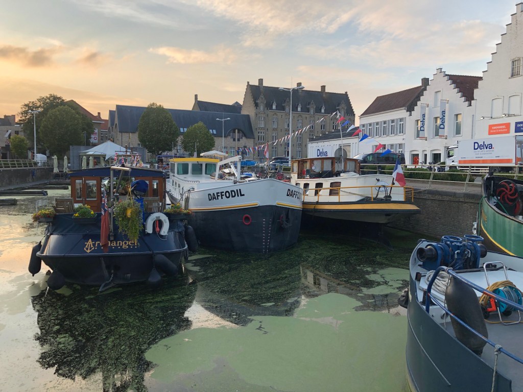 And so to Veurne and the whole point of this trip. We are here for a Dutch Barge Association (DBA) rally. Now I know we aren’t a dutch barge and I think they do, but somehow we are at the rally and are moored up next to another boat that definitely isn’t a dutch barge either, so we aren’t alone. They have been members of the DBA for a number of years and their website is brilliant for up to date mooring and waterway information, so this is a nice way of meeting all those people that contribute to making our boating life that little bit easier.