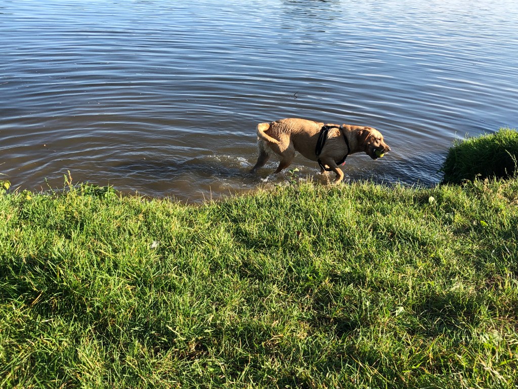 We then continued on around Leukermeer and back to the harbour. All this without so much as a sniff at a ball. But then we carried on towards the bridge, down the little track into the water that wasn’t called Leukermeer and out came the ball! If you read my blog last year you will know that dogs are not allowed in Leukermeer for some strange reason, but just through the bridge it appears to be ok. Same water, different name. Strange rules these humans have at times!