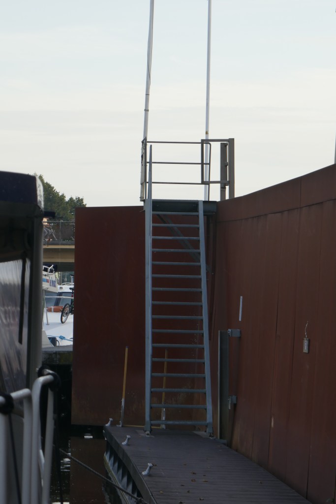On first glance the pontoon looked fine but then we noticed the nasty metal steps… I’m actually quite good at negotiating this very dog unfriendly surface, but this time a nail got caught in one of the holes. Luckily I was only moving slowly (amazingly for me) so it didn’t rip my nail off, but it hurt and I so wasn’t too keen to use the steps again. As a reminder for next time, there is plenty of mooring further north on a pontoon where access is via a ramp. All dogs that can’t be carried should insist on mooring there.